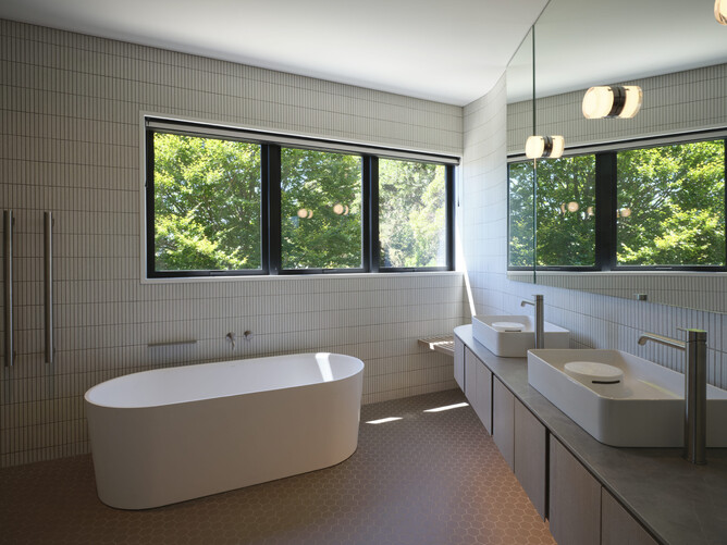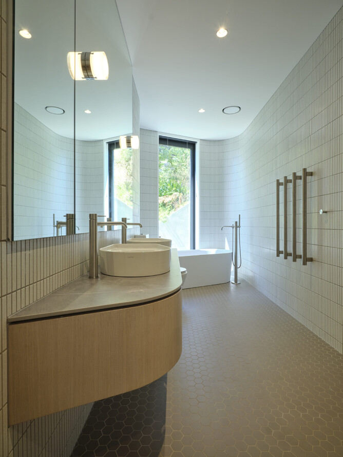 A complex drainage installation was required by the specific earthworks involved, adding an extra layer of complexity to the project. Additionally, we managed all the plumbing work across the home's four levels, which further heightened the demands compared to a typical new home build. Our team were also meticulous in installing the high-end plumbing fixtures, including the delivery of the stone baths via crane to the upper levels.